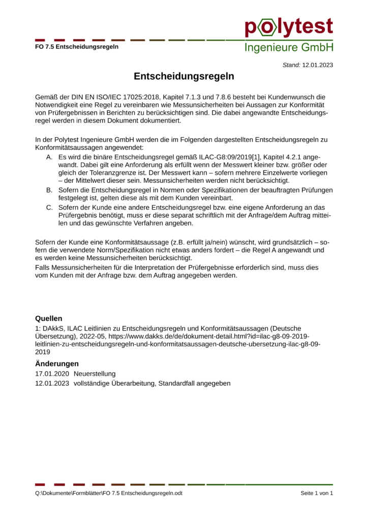 Unsere Entscheidungsregeln gemäß DIN EN ISO/IEC 17025:2018 können hier heruntergeladen werden: